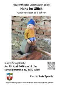 Details 25/04/2026 15:00 - 16:00 Zwinglikirche, Schweglerstr. 39 Figurentheater Leiterwagerl Hans im Glück Puppentheater ab 3 Jahren Speicher den Termin in einem Kalender von iCalendar Google Outlook Outlook Online Yahoo!