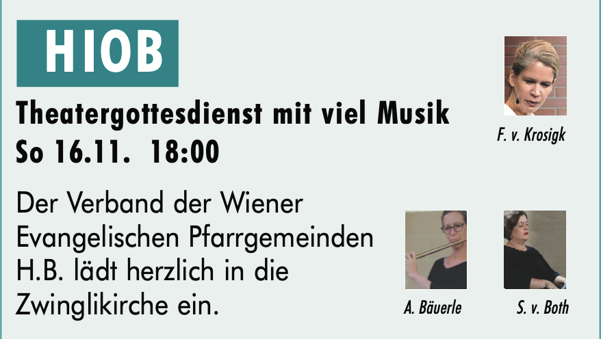 Details 16/11/2025 18:00 - 19:00 Zwinglikirche, Schweglerstr. 39, 1150 Wien Theatergottesdienst über die biblische Gestalt “Hiob” Speicher den Termin in einem Kalender von iCalendar Google Outlook Outlook Online Yahoo!